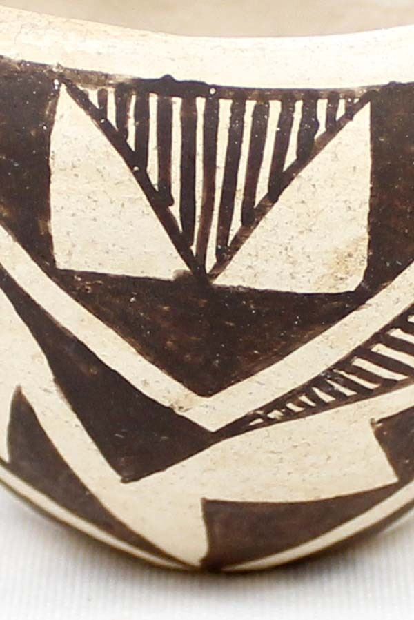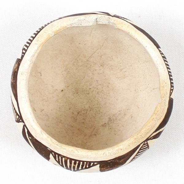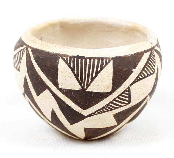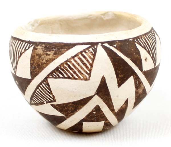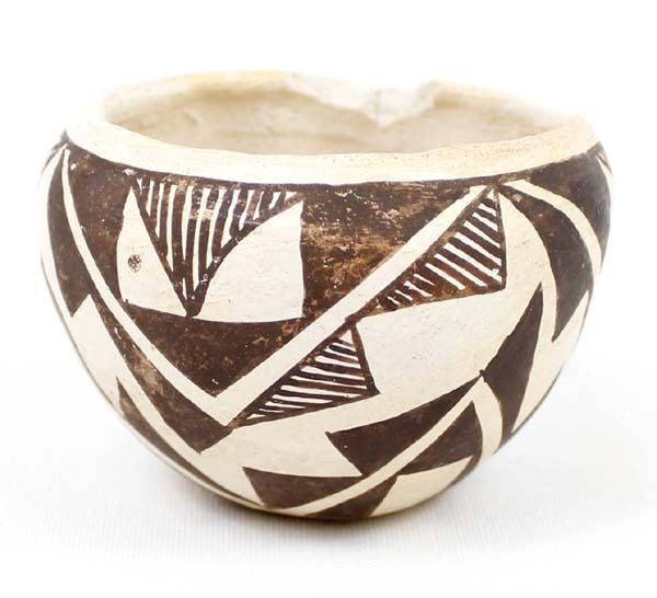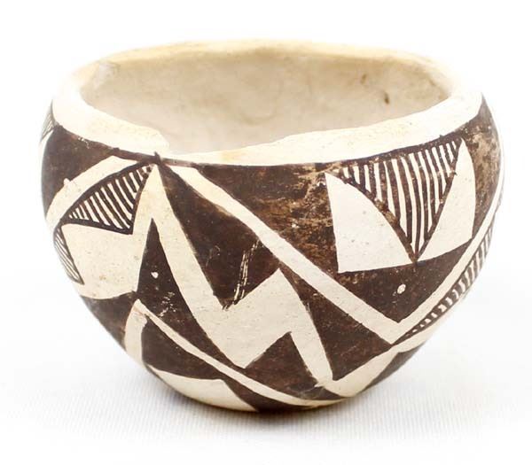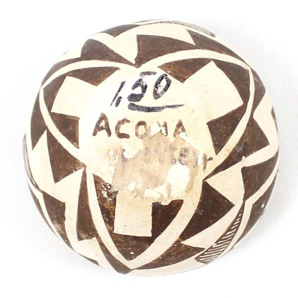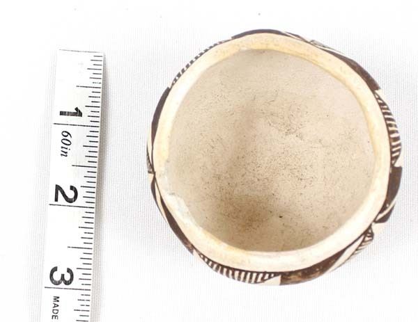 Historic Native American Acoma Pottery Bowl, measures 2.75'' x 2'', wear on the bottom, chip in rim measuring approximately .75''L