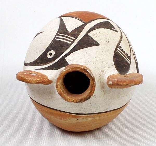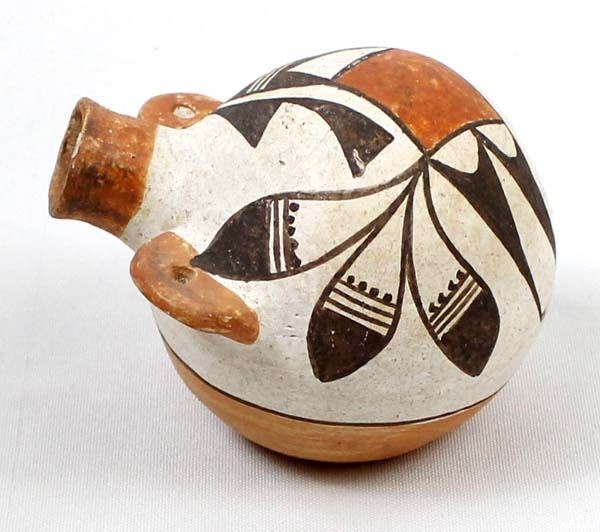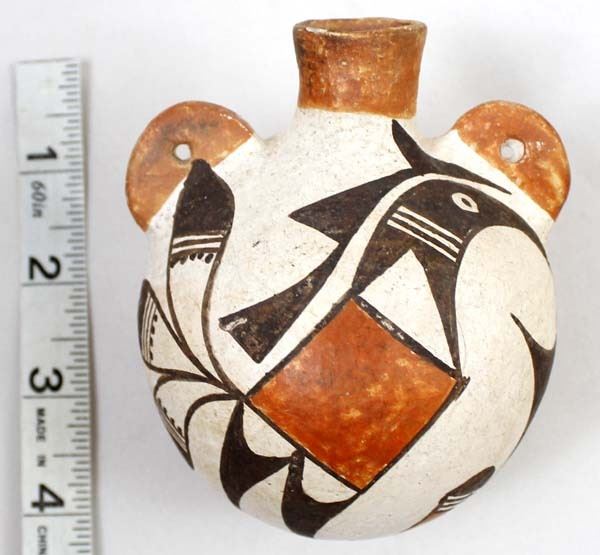 Historic Native American Acoma Pottery Canteen, measures 3'' x 4'' and has the original price of $2.50 written in pencil on the bottom