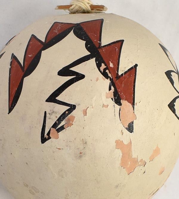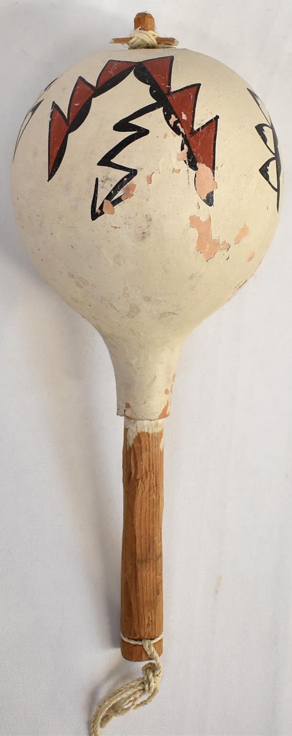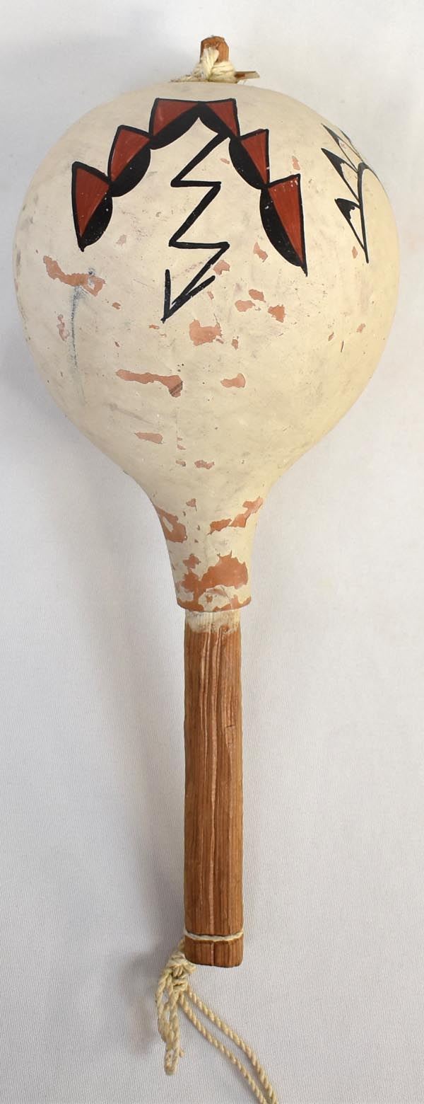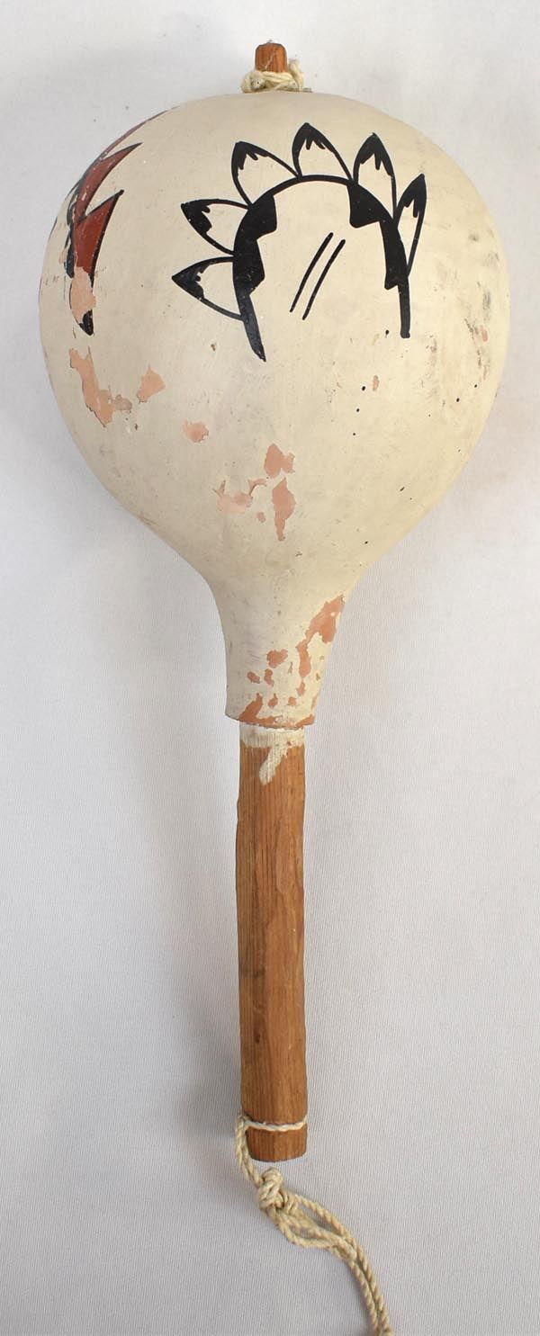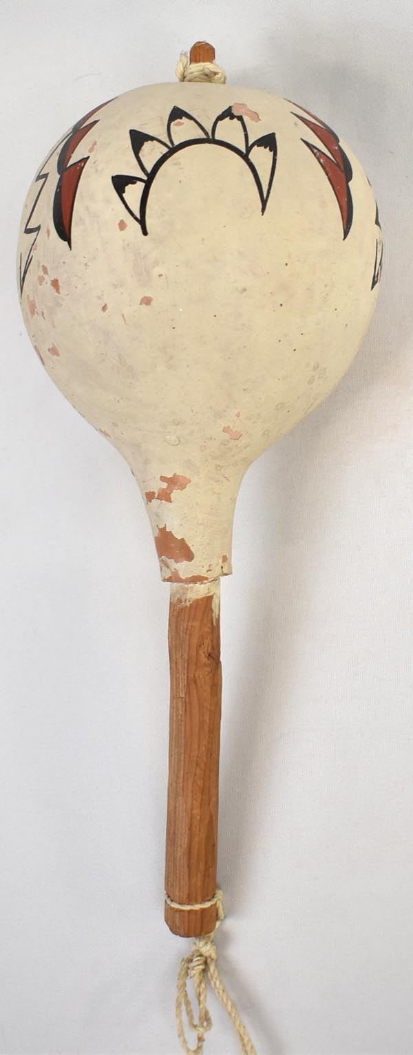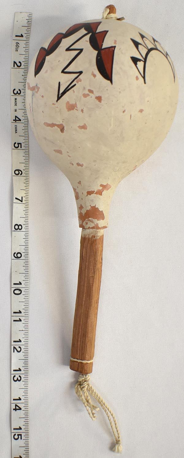 Historic Native American Acoma Gourd Rattle, measures 6'' x 13'', some paint loss