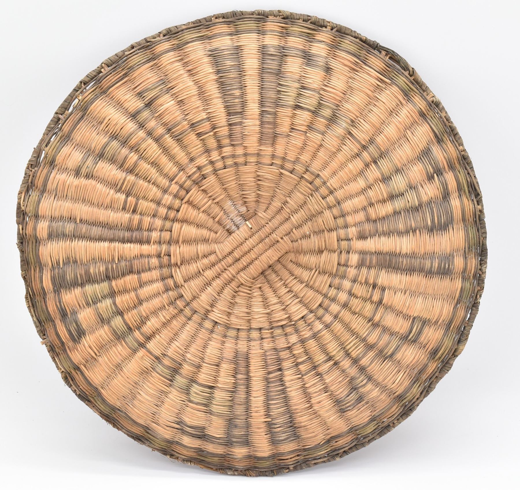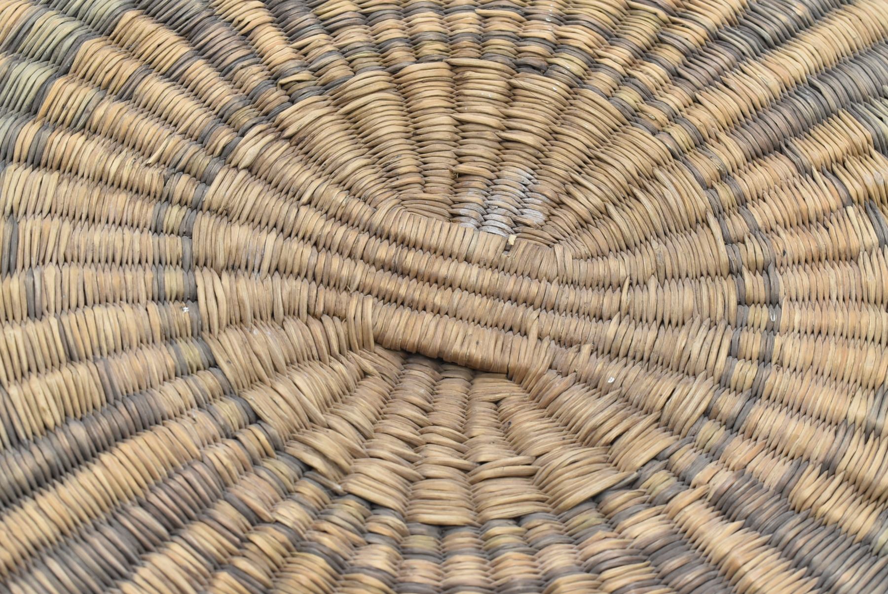 Historic Native American Hopi Dance Basket, measures 13''D, slight wear on the center piece commensurate with age