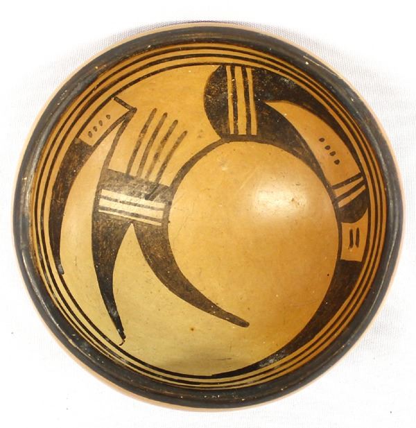 Historic Native American Hopi Pottery Bowl, measures 2.5''H x 5''D, written in pencil on the bottom reads ''60 cents''