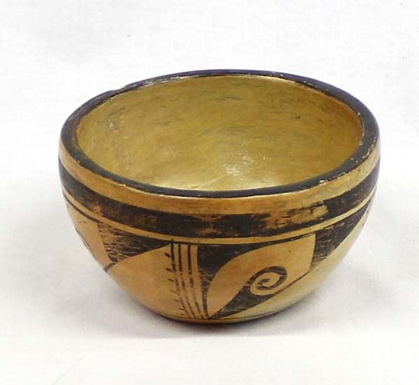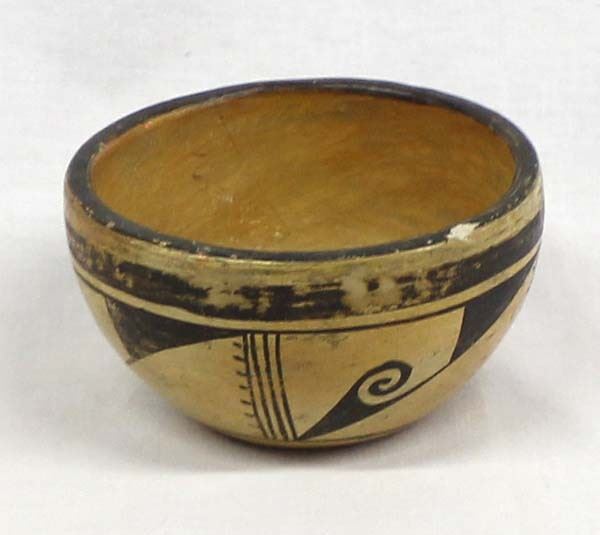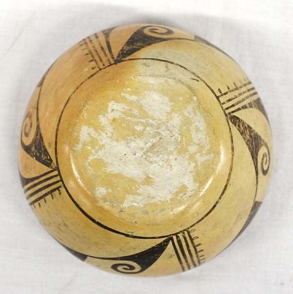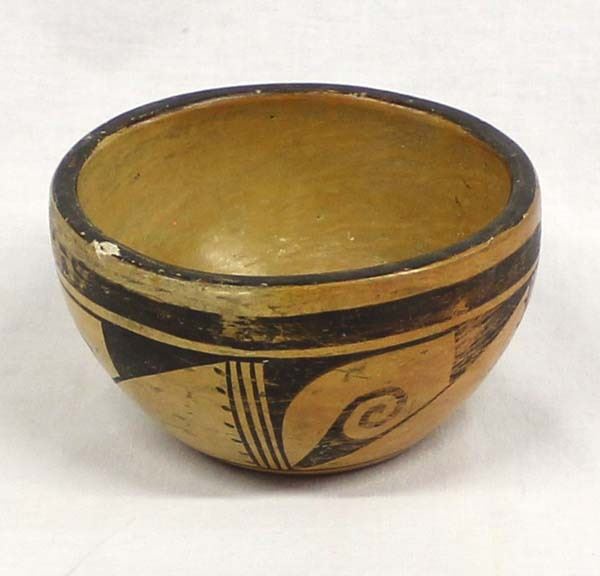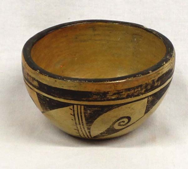 Historic Native American Hopi Pottery Bowl, Wind Pattern, measures 2.5'' x 3.5'', paint loss, chip in rim, nicks