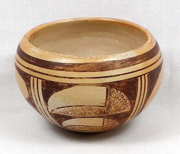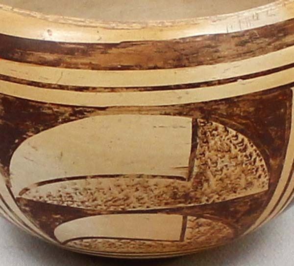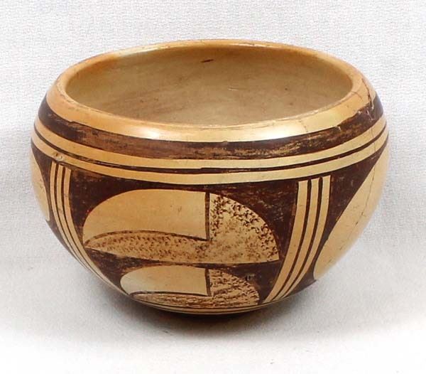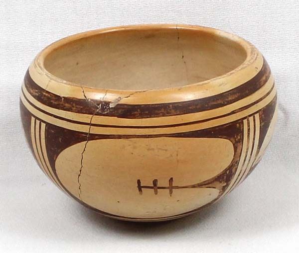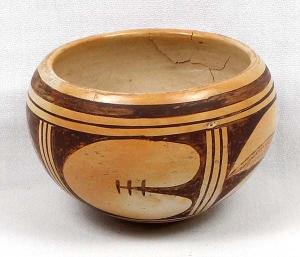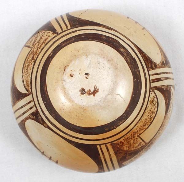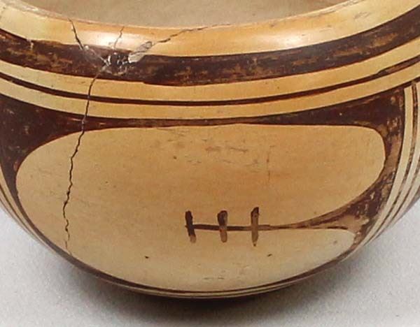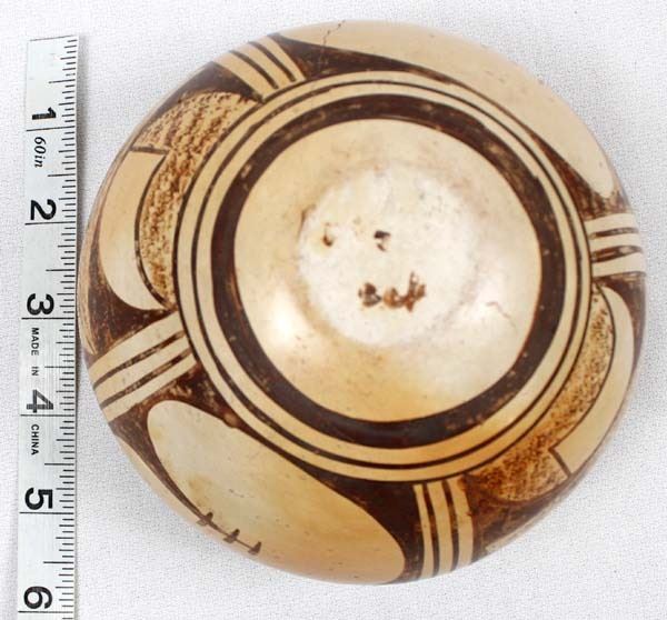 Historic Native American Hopi Pottery Bowl, unreadable signature on the bottom, measures 3'' x 5'', has been glued, missing very small piece on side (.25'')