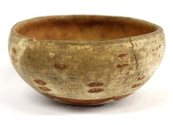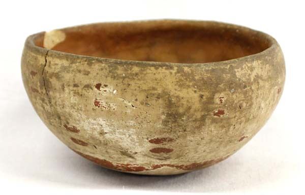 Historic Native American Isleta Pottery Bowl, measures 2''H x 4''D, chip in rim measuring 7/8'' at the widest point