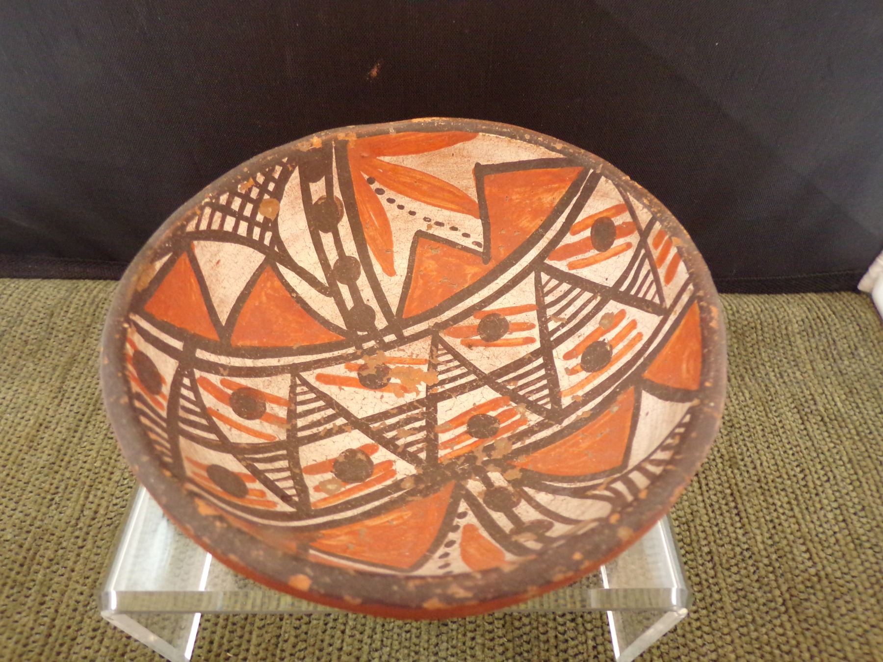 Historic Native American Isleta Pottery Bowl, measures 2''H x 5''D, some pitting and paint loss commensurate with age