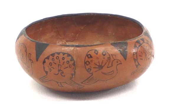 Historic Native American Maricopa Pottery Bowl, turkey motif, measures 3.25''H x 7''D, has been glued, ca. 1930s-1940s