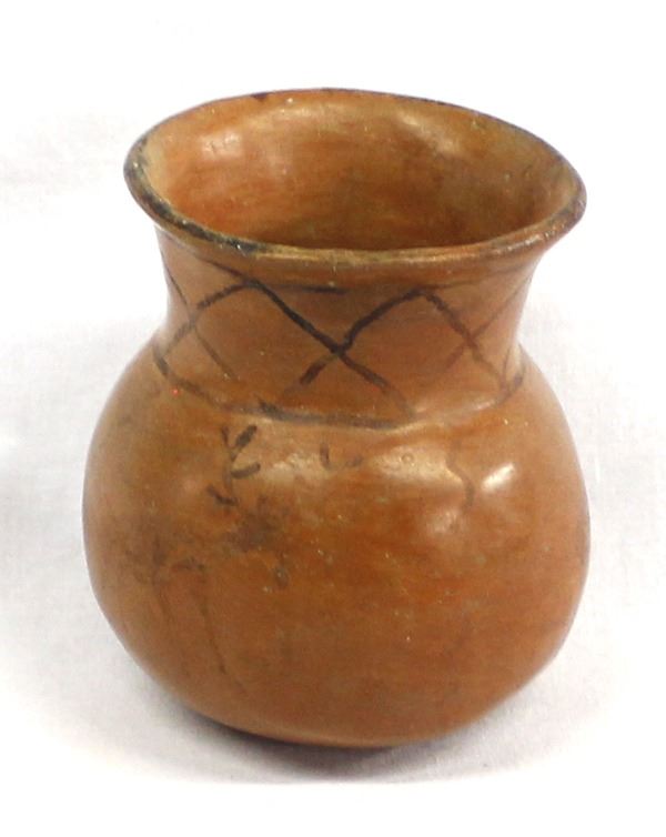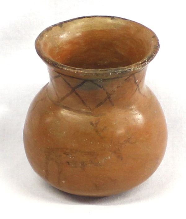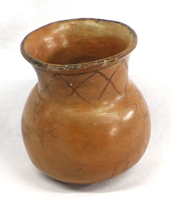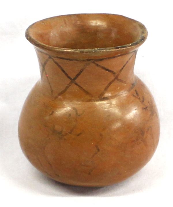 Historic Native American Maricopa Pottery Jar, measures 3.25'' x 4'', has faint designs including a deer, ca. 1940s-1950s