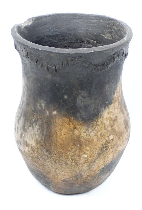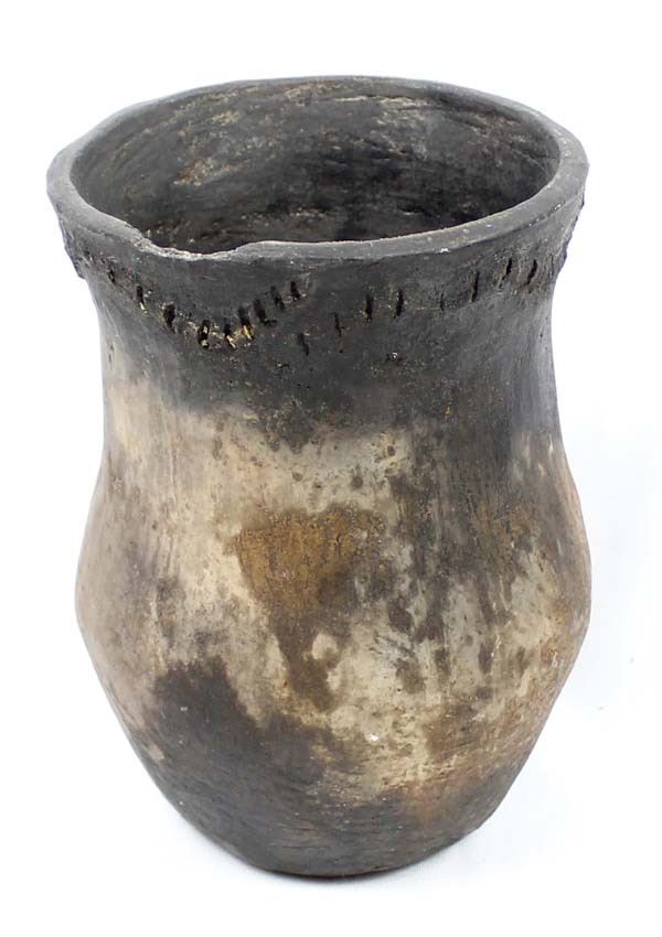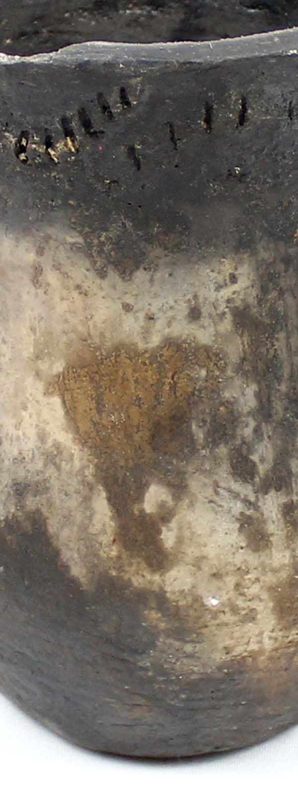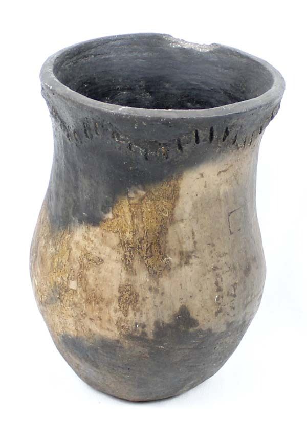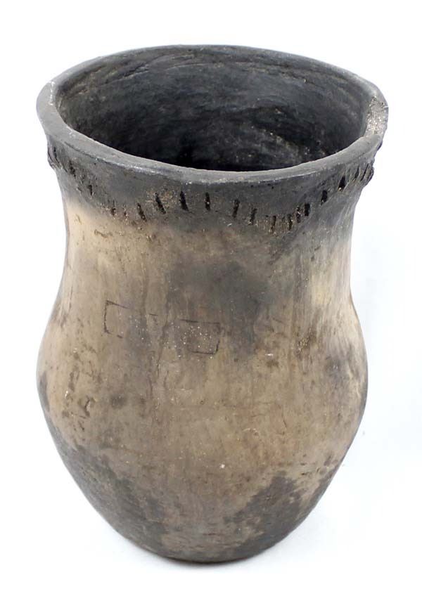 Historic Native American Navajo Drum Jar, measures 8''H x 5.5''D, has 1.75''L chip in rim