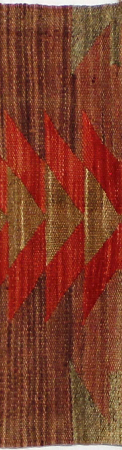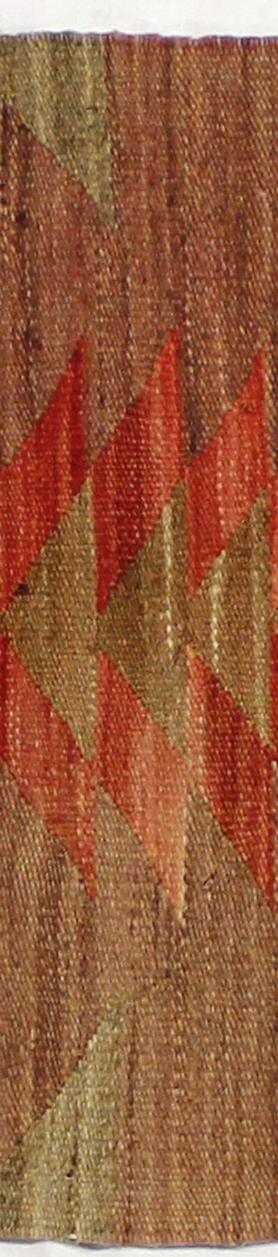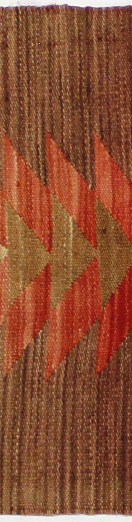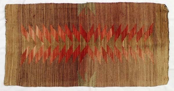 Historic Native American Navajo Wool Textile Rug, serrated diamond, measures 20'' x 40'', some selvage damage, has a few small holes