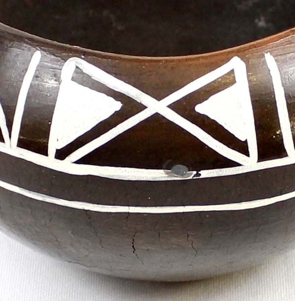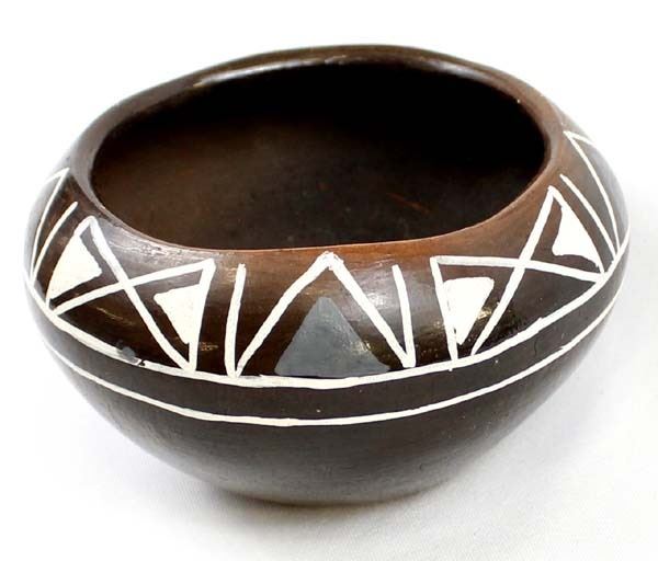 Historic Native American San Juan Pottery Bowl, possible overpaint, measures 3'' x 5''