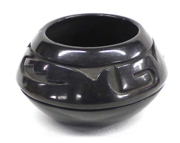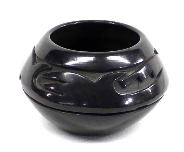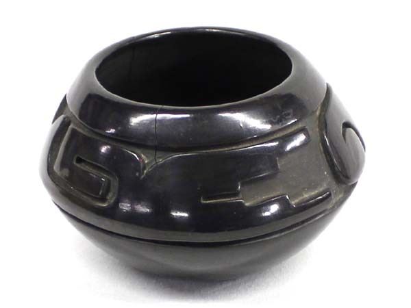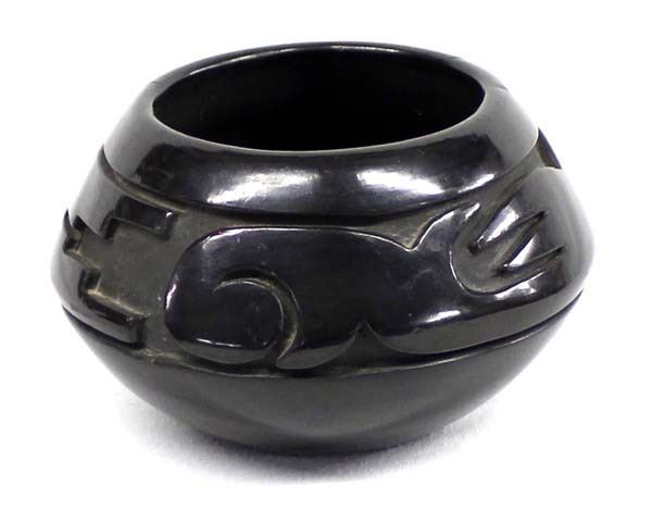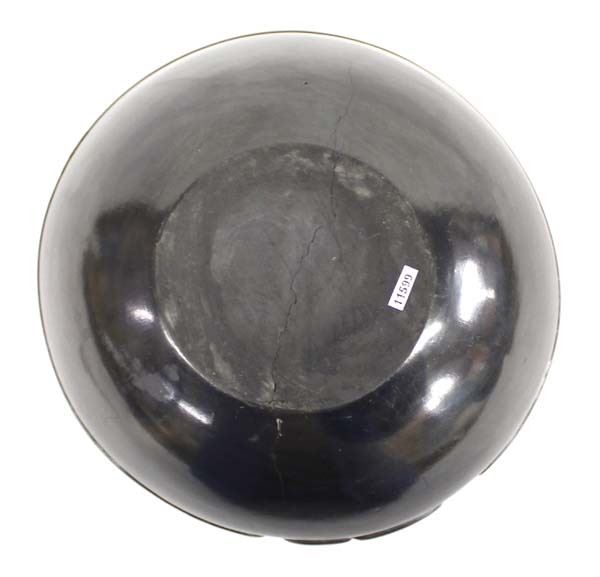 Historic Native American Santa Clara Pottery Bowl, measures 4.5'' x 7'', deeply carved designs, has at least 3 pressure cracks