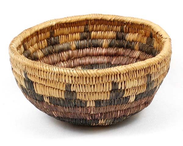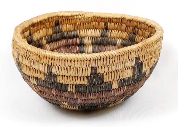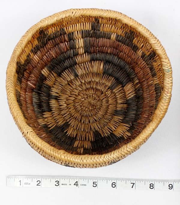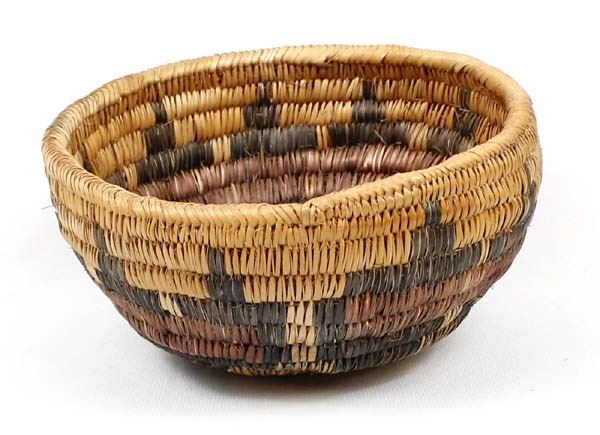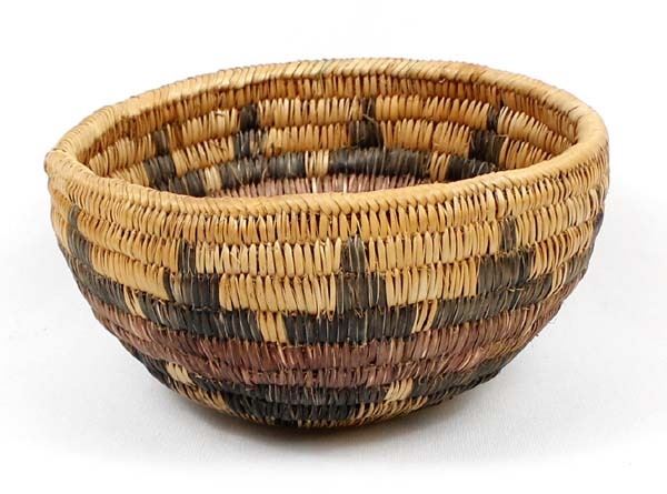 Historic Native American Navajo Multi-Toned Basket, measures 4'' x 7'', stairstep cloud designs