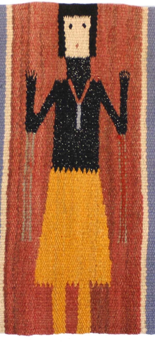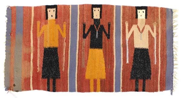 Historic Native American Navajo Wool Textile Rug, measures 17.5'' x 34''L, ca. early 1900s, selvage damage and stains in one corner, very small hole, fringed on one end