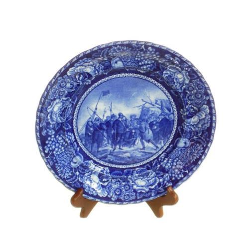 Pictured are Indians greeting Miles Standish. There is an inscription on the back by Bryant which reads: "Landing of the Pilgrims - They little thought how pure a light, with years, should gather round that day, how love should keep their memories bright, how wide a realm their sons should sway". This plate is near mint and is a great piece of American history.