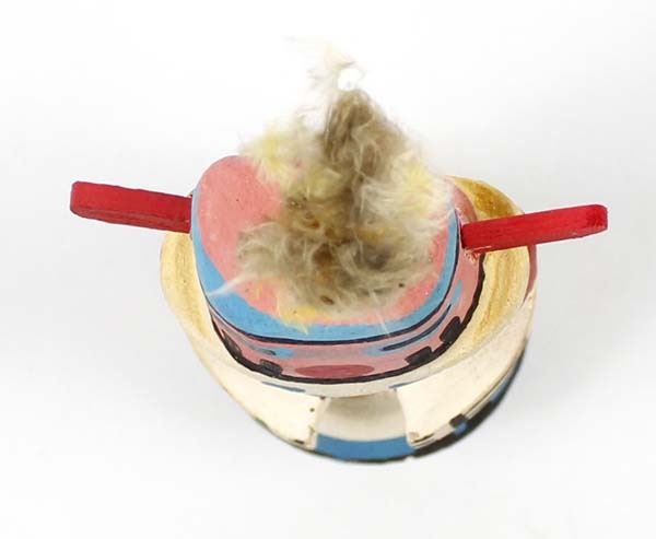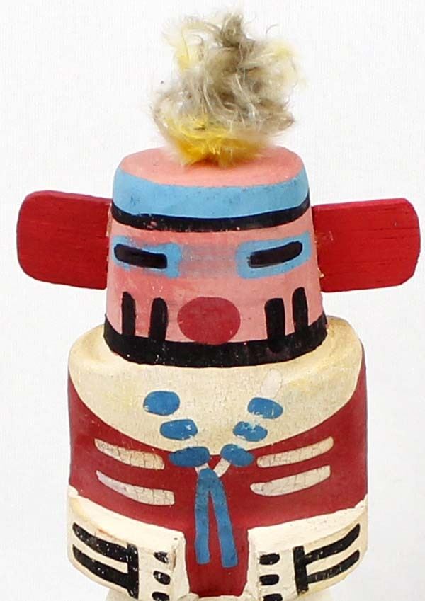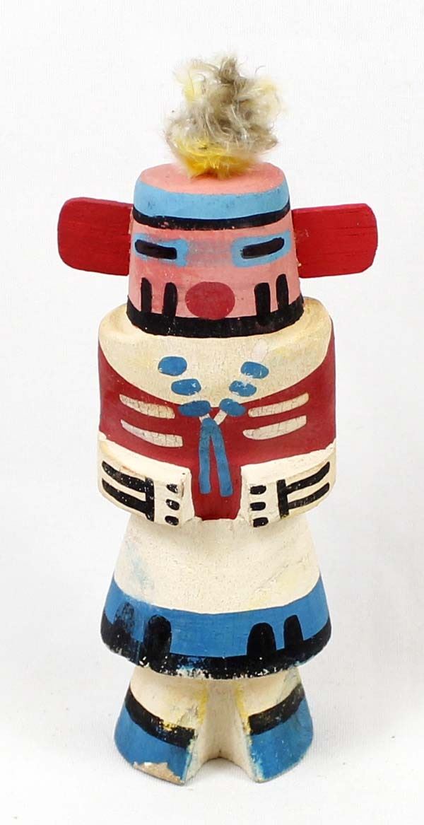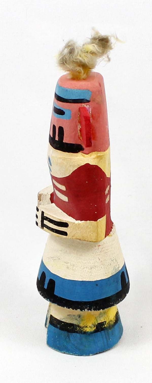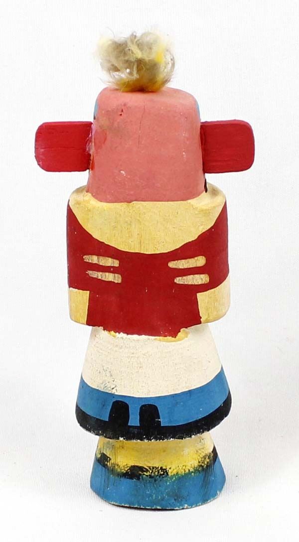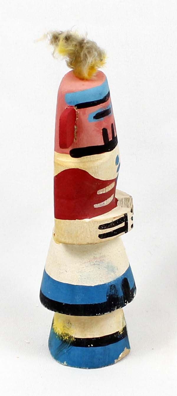 Historic Route 66 Native American Hopi Corn Kachina, measures 3'' x 7'', loss of paint on base, does have some smeared areas, embellished with feather topknot