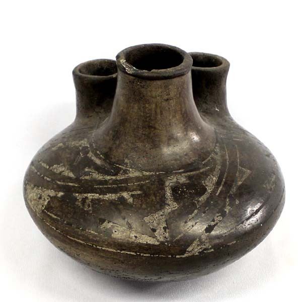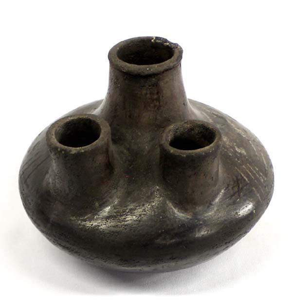Antique/Historic Native American San Ildefonso 3 Spout Pottery Wedding Vase, largest spout is chipped, measures 5.5'' x 6.5''