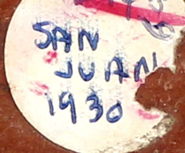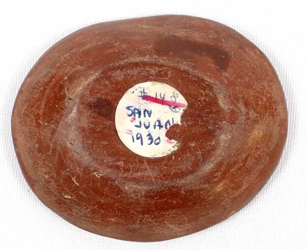 Historic Native American San Juan Pottery Shallow Bowl, measures 2'' x 2.75'', ca. 1930s, small chip on underside of rim