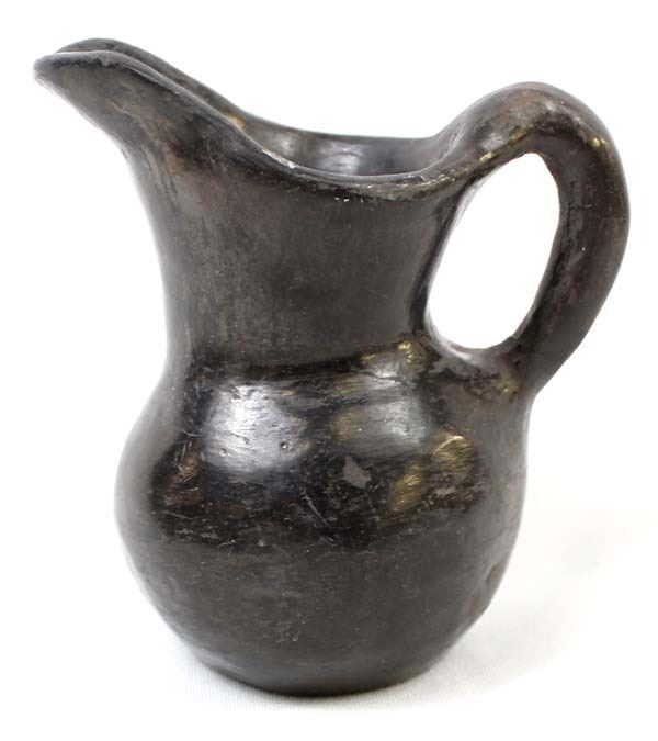Historic Native American Santa Clara Blackware Pottery Pitcher, measures 4.5'' x 4''
