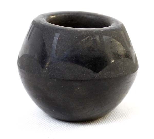 Historic Native American Santa Clara Pottery Jar by Cresencia Tafoya, (1918-1999), measures 2'' x 2'' and has faint signature on the bottom, FYI: ''Cresencia Tafoya was the matriarch of a family of potters. She created a style of highly polished and tightly painted pottery which has been continued by her children. Cresencia won numerous awards for her pottery at Santa Fe Indian Market and other art events.''