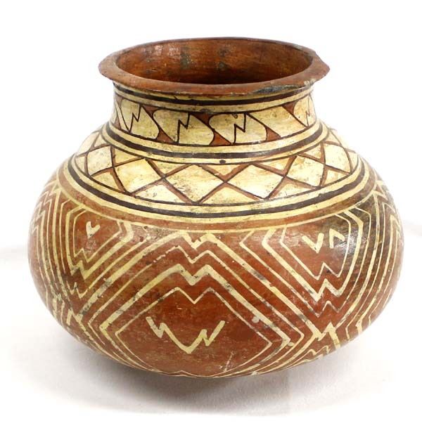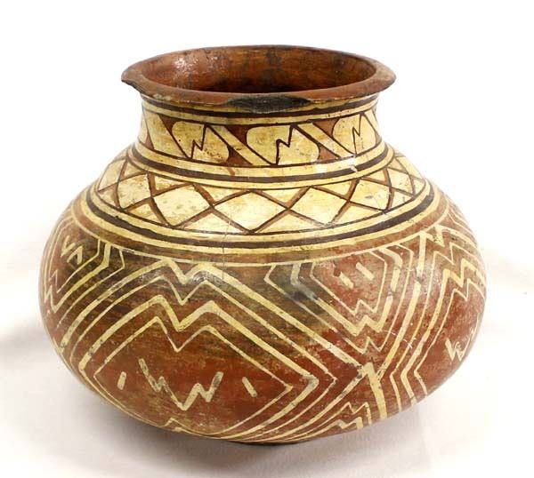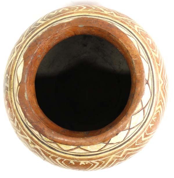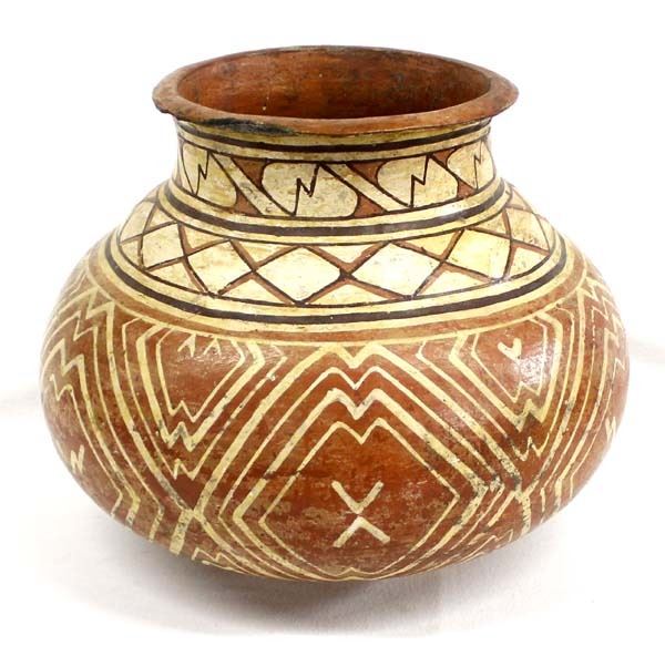 Historic Peruvian Shipibo Masato Chomo Pottery Olla, used to ferment beer in, measures 11'' x 11'', 3 chips in rim along with some minor chipping, long pressure crack