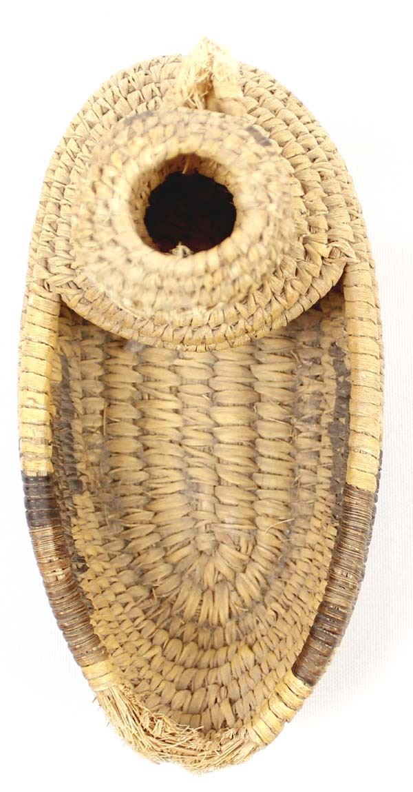 Historic Native American Tohono O'odham Basketry Duck, measures 3.5'' x 6'', damage to beak and rim near tail