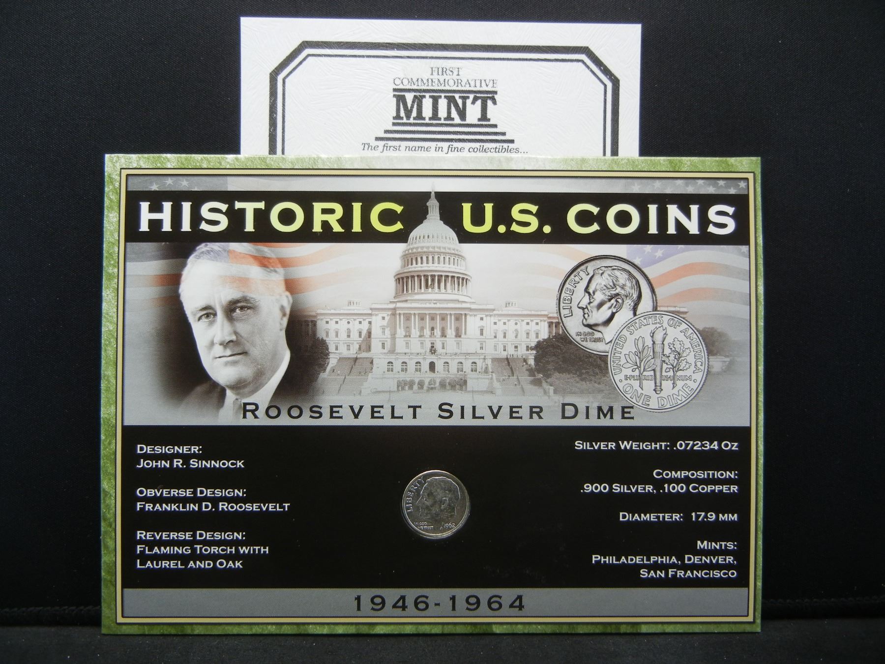 Historic U.S. Coins Roosevelt Dime Set With COA.