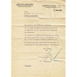 (1887-1945) German admiral and head of the German intelligence agency Abwehr. T.L.S. "Canaris" in indelible pencil on Reichskriegsminister...