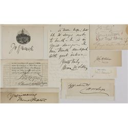 A group of eight signatures of prominent men in early twentieth-century business and philanthropy, most on small sheets and mounted. Includes: JOHN D.