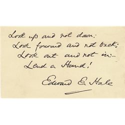 (1822-1909) American clergyman and author of the patriotic tale Man Without a Country. Fine A.Q.S. from his story "Ten Times One is Ten" (...