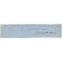 (1848-1908) American author remembered for his enduring creations, Uncle Remus and Brer Rabbit. Bold signature taken from a letter, mounted. Very good