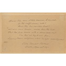 (1803 - 1882) American poet and friend of Alcott, Thoreau and Hawthorne, he was the American advocate of transcendentalism. Nice association manscript