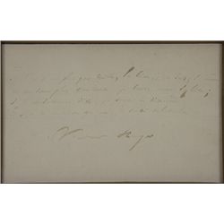(1802 - 1885) French writer and author of the classics Notre Dame de Paris, Les Miserables, and much poetry. A.L.S. "Victor Hugo" 1p. oblo...