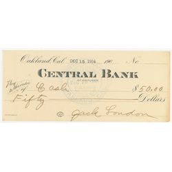 (1876 - 1916) American novelist and short-story writer, author of The Call of the Wild, The Sea Wolf and White Fang. Partly-printed D.S. 1p. oblong 12