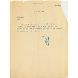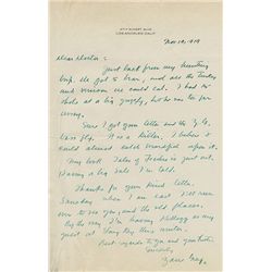 (1875-1939) American author of tales of the American West, including Riders of the Purple Sage. A.L.S. of ZANE GREY, 1p. 4to., Los Angeles, Nov. 19, 1