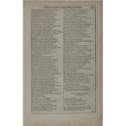 A set of three printed leaves from the Third Folio edition of the Collected Works of W...