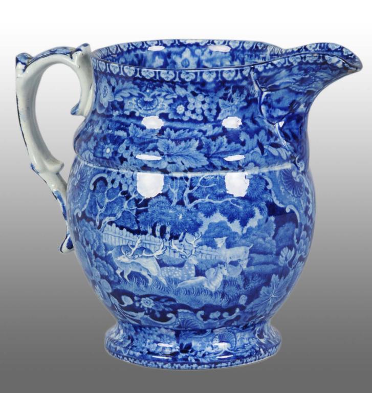 Pitcher depicts a deer scene. No repairs or cracks but a small chip under the spout. Condition (Excellent). Size 8 - 1/4" T.