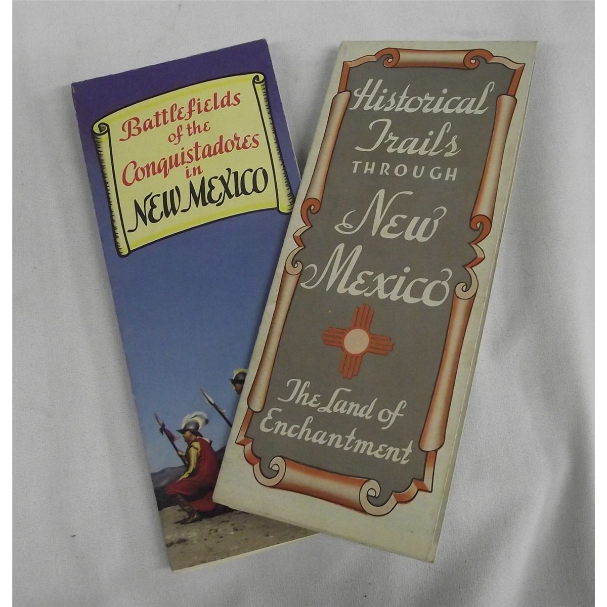Historical Posters, largest measures 22''H x 17''W, #1 Front reads: Historical Trails Through New Mexico The Land of Enchantment Back reads: Coronado Cuarto Centennial 1540-1940 An event Four Centuries in the Making, copyright 1940 New Mexico State Tourist Bureau, Santa Fe, New Mexico #2 Front reads: Battlefields of the Conquistadores in New Mexico Back has a message from the governor of New Mexico John E. Miles, copyright 1942 New Mexico State Tourist Bureau, SAnta Fe, New Mexico, McCormick-Armstrong Co. Wichita Litho in U.S.A.