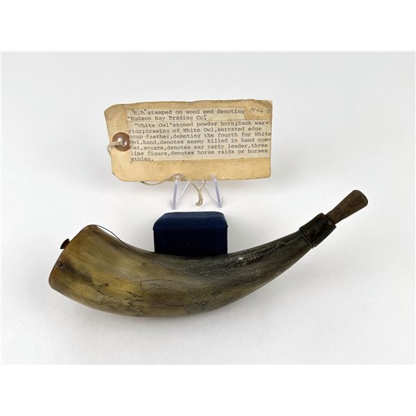 801 - White Owl Scrimshaw Powder Horn FlaskDavis Brothers Auction