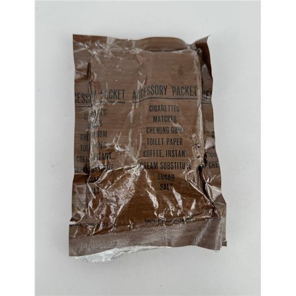 Comes with Cigarettes, matches, chewing gum, toilet paper, coffee, cream, sugar, and salt.