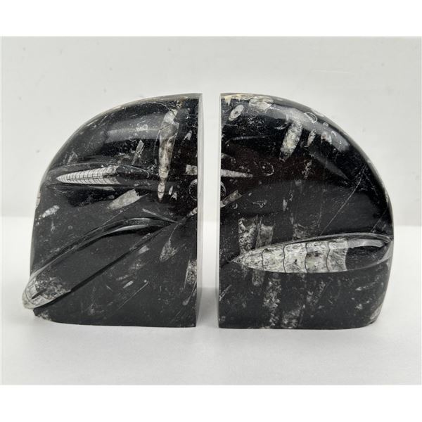 Moroccan Orthocone Fossil Bookends1333 - Moroccan Orthocone Fossil Bookends