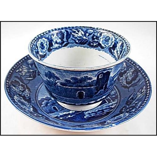 A lovely antique dark blue historical staffordshire tea cup and saucer in excellent condition. Ther is one very tiny ding noted to the cups bottom rim edge, but it is very small. I believe this to be made by Clews, but unfortunately it is not marked.