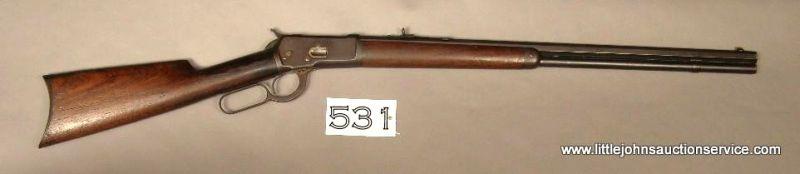 Historically-associated Winchester Model 1892 lever action rifle, .44 WCF cal., 24” octagon barrel, wood stocks, #219668. This gun is in overall good condition showing an untouched even heavy brown patina on metal surfaces with somehints of original muted blue in protected areas; good bore, action and markings; good wood with scattered nicks, mars and scratches from carry and storage. This rifle descended through the Leigh Hunt family and was given to patriarch Leigh Huntaround 1904 or 1905 by legendary cowboy and actor, Tom Mix. Documentation from the family indicates Mix was hired by Mr. Hunt to work security for his employees and a cement plant being built in Cowen, Tennessee (the town of Le Hunt, Kansas wasnamed after Mr. Hunt who was a major contractor in the late 19th-early 20th century in the mid-west). Mix had been a lawman in Dewey, Oklahoma, was a performer in Wild West shows and was looking for work in the “off seasons”. He notonly protected the plant construction and workers from gamblers, sharpies and other riff raff, but also saw to it that payroll from Independence made it each week to the employees and they didn’t “loose” their earnings on Friday nights in the