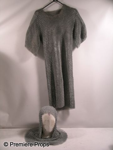 A medieval era chainmail coif used in theatrical productions in England and on the History Channel series 'Conquest' (2002-2005). Chainmail coifs were used in medieval times to offset blows with swords and large knives. The coifs are made from grey steel and are very heavy and authentic. Included is a large size riveted coif to cover the head and a heavy, full body chainmail that covers the shoulders down to the waist. Oversized item. Additional postage required.