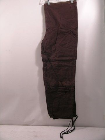 A pair of large size, long tie-up pants used in theatrical productions and on the History Channel's 'Conquest' TV series. The pants are made from brown cotton material with a black drawstring, and also has black drawstrings on lower calves. Label inside reads 'Museum Replicas Ltd.'