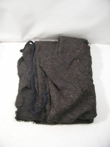 From various theatrical productions and History Channel's 'Conquest' TV series, this is a full size wool cloak. The full body size cloak is made with dark wool fabric and has a black rope-size drawstring around the neck area. Cloak does have a circular tear in the fabric.