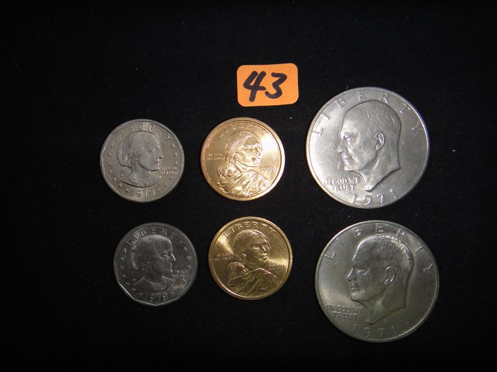 Two of each - 1971-D Eisenhower, 1979-D Susan B Anthony, and 2000-D Sacagawea