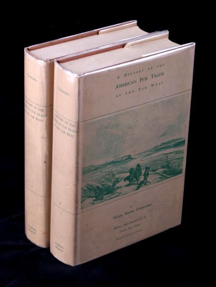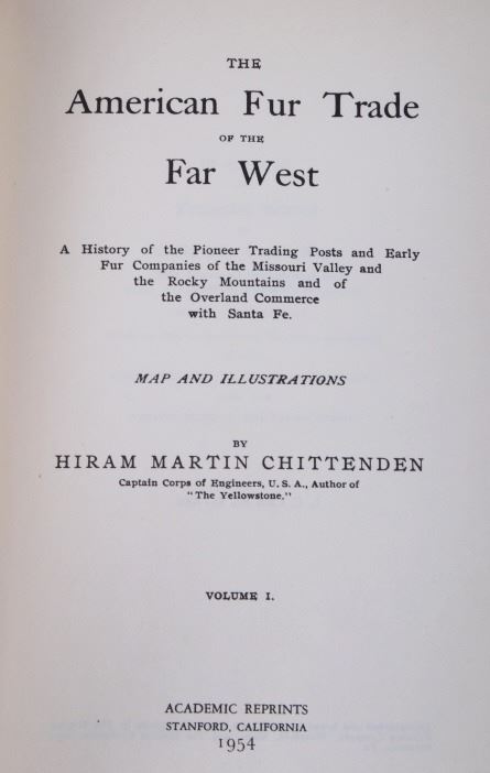 Featured in this lot is the two-volume work entitled, "A History of the American Fur Trade of the Far West" by Hiram Martin Chittenden, published as a reprint with a new introduction in 1954 (orig. 1902). Hiram Martin Chittenden (1858–1917) was a leading historian of the American West, especially the fur trade. A graduate of West Point, he was the Seattle district engineer for the Army Corps of Engineers (April 1906 – September 1908) for whom the Hiram M. Chittenden Locks in Seattle, Washington, were named. This particular work details the fur trade in the American West and its profound impact on North American history. These volumes are in good condition and measure 8.5" x 5.75".