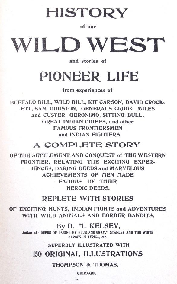 This is a first edition of "History of Our Wild West and Stories of Pioneer Life" written by D.M. Kelsey and published in 1901. The book provides historical accounts of the lives and adventures of figures such as Buffalo Bill, Kit Carson, Davy Crockett, Daniel Boone, Sam Houston and many more. The book features a wonderfully illustrated cover with numerous illustrations throughout. The book is in good condition. It measures 6.5" x 8.25".
