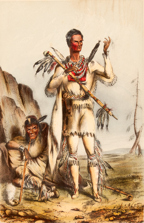 This is a very famous and absolutely magnificent series of Hand-colored Portraits of the Indians of North America. Reprinted from the 1836-38-44 folio edition, which was described by Field as "one of the most costly and important ever published on the American Indians. The plates are accurate portraits of celebrated chiefs, or of characteristic individuals of the race, and are colored with care, to faithfully represent their features and costumes." Howes notes the plates as "mostly the work of King," and declares that they are "the most colorful portraits of Indians ever executed... The original oil paintings from which the plates were copied were all destroyed in the 1865 Smithsonian fire."