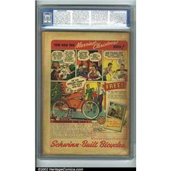 Hit Comics #20 (Quality, 1942) CGC VG- 3.5 Cream to off-white pages. This issue has a terrific cover by Reed Crandall. It's hard to appreciate Crandall's intricate work from a thumbnail photo, but by looking at the fine detail on this copy up close, it is easy to see why he is so revered all these decades later. This VG- copy has a faint sun-shadow along the right front cover edge. CGC notes: "Centerfold detached. Moderate amount of pencil erased from interior cover." Overstreet 2002 GD 2.0 value = $100; FN 6.0 value = $300. Important notice: We expect to be auctioning lots at the rate of 200-250 per hour. Sometimes eBay Premier live bid software cannot keep up with that pace, so we strongly recommend that you place a realistic proxy bid now as insurance to avoid disappointment. Also please note that all Heritage/CAA lots purchased through eBay Premier carry a 20% Buyer's Premium.